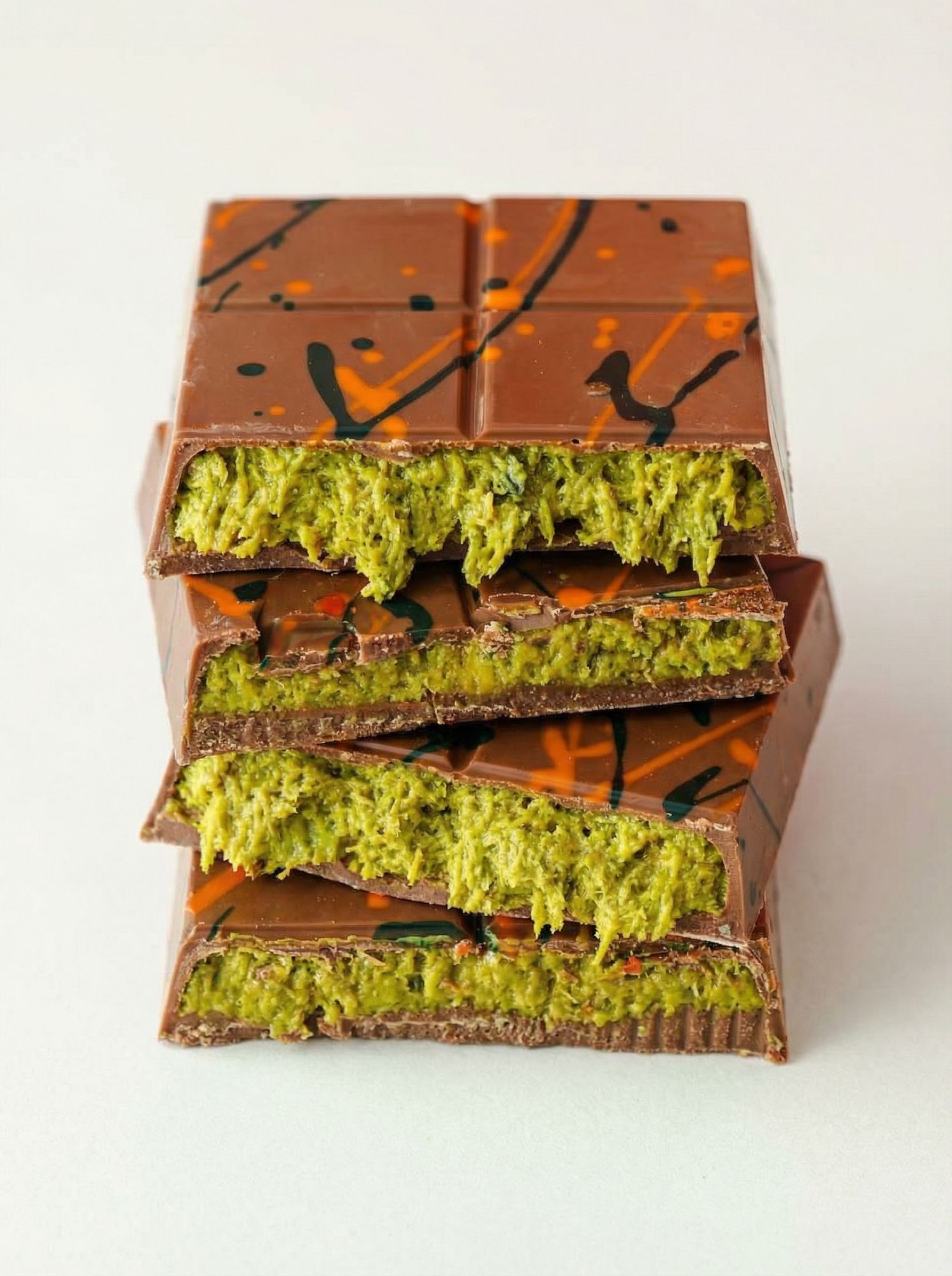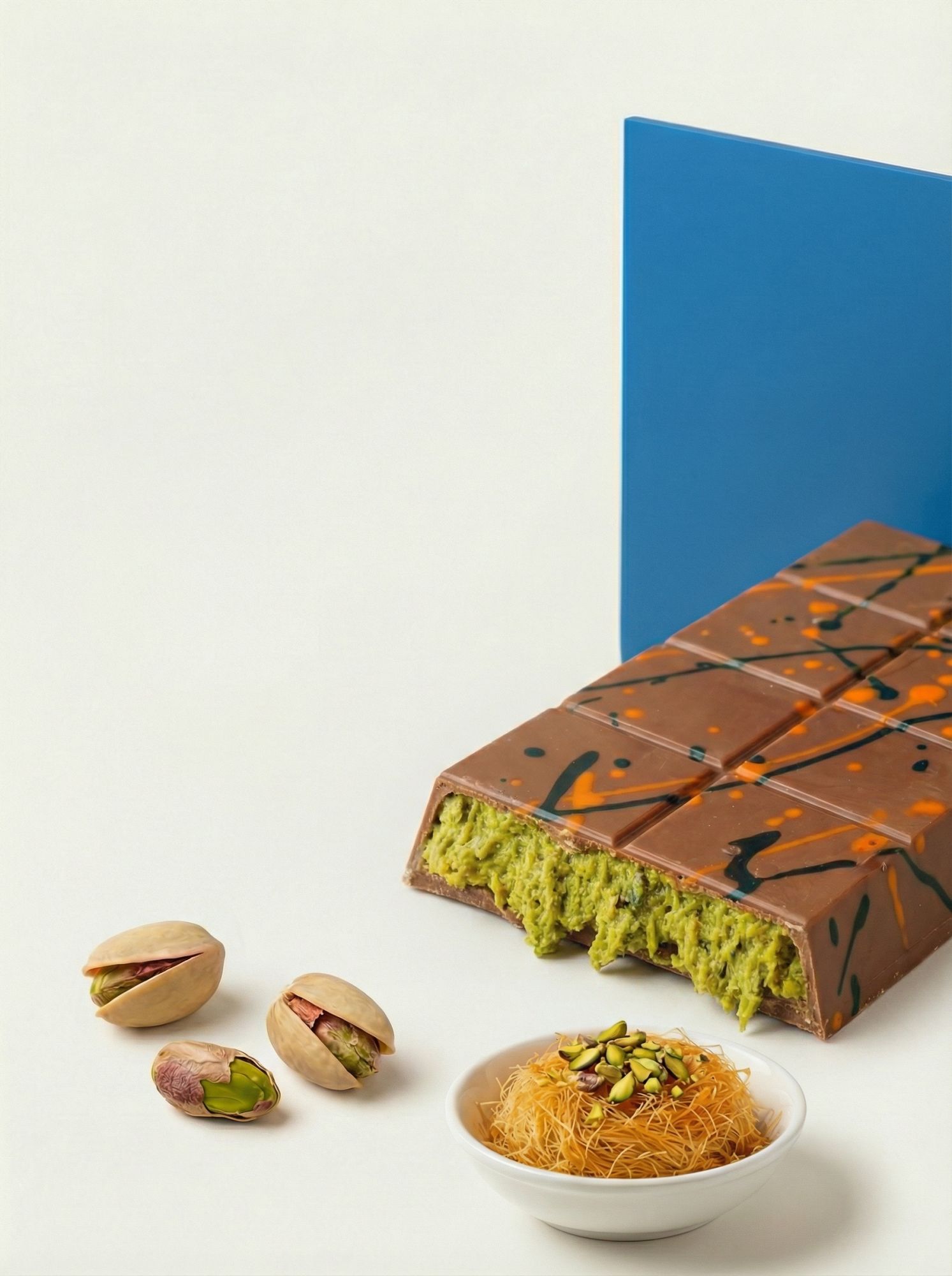 Молочный шоколад с фисташками и кнафе.